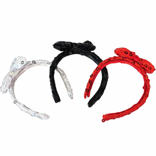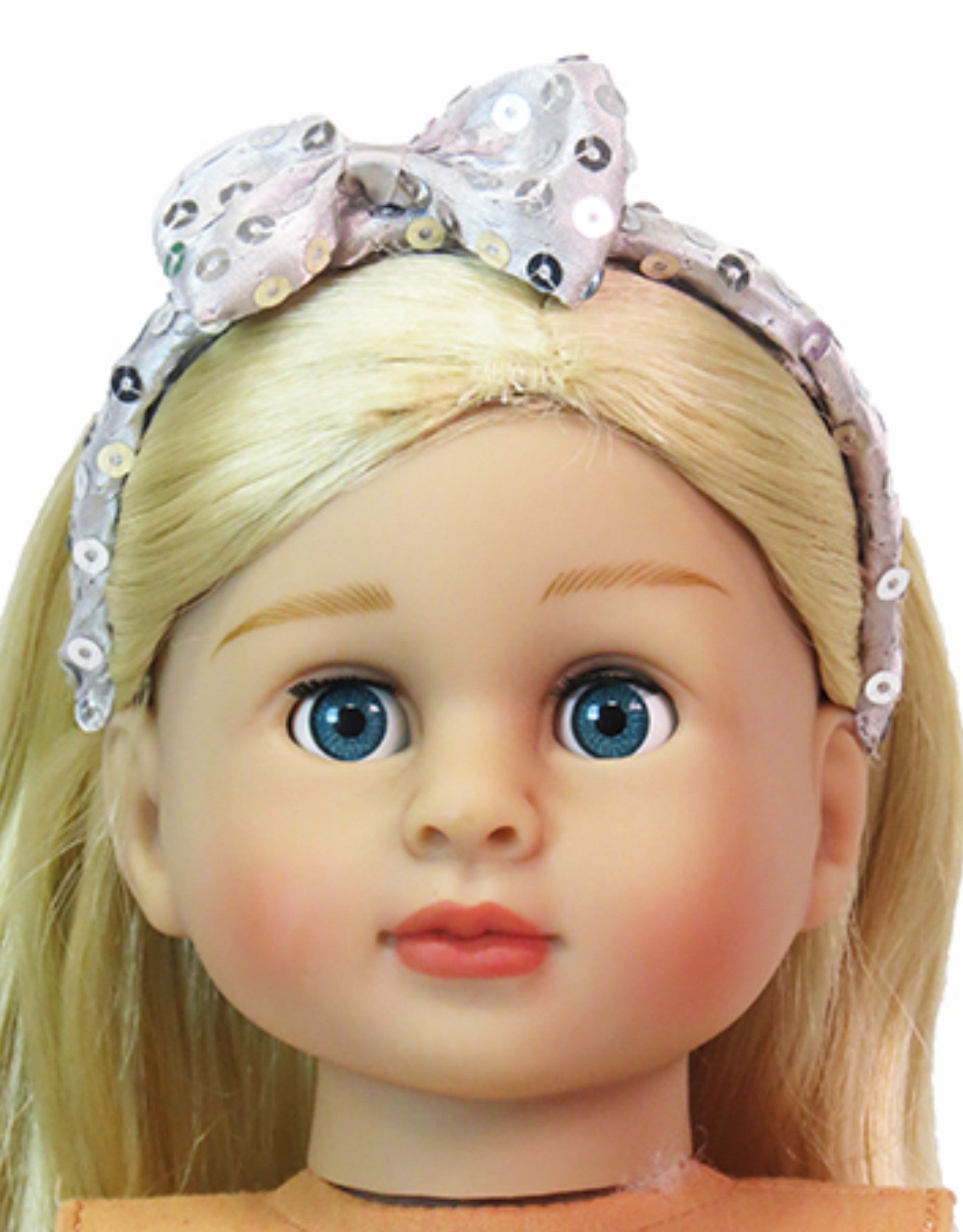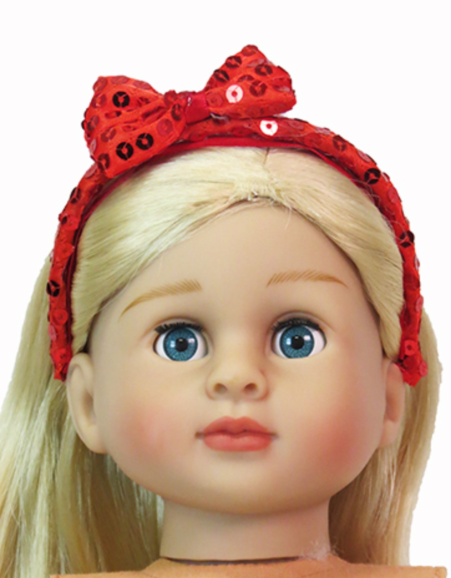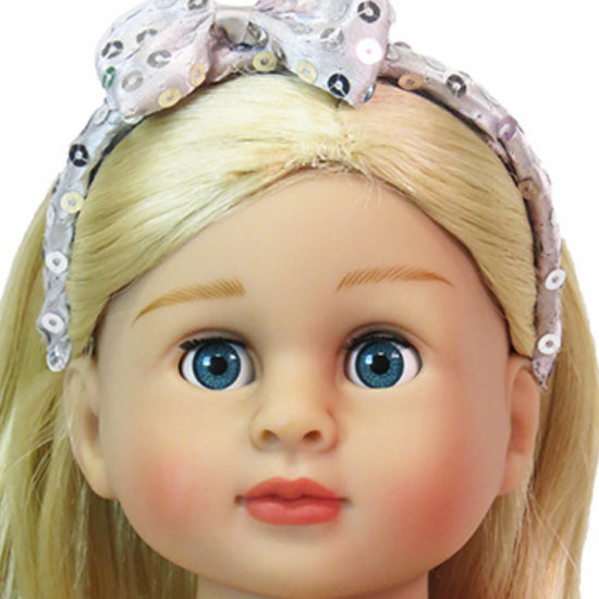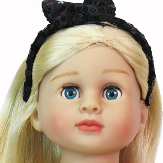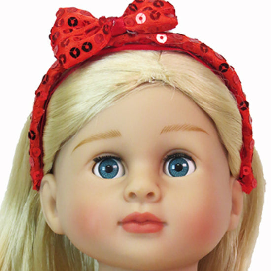 Add instant sparkle to your doll's wardrobe with this trio of sequin headbands! Each pack includes black, red, and silver styles that perfectly complement any outfit. Designed specifically for American Girl-sized dolls with approximately 12" head circumference, these headbands slip on easily and stay secure during playtime adventures. Mix and match to create endless styling possibilities for your doll collection.