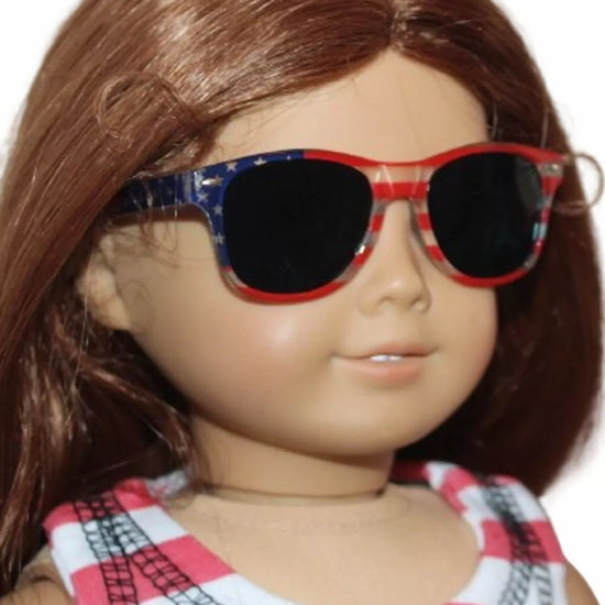 American flag themed plastic frame sunglasses fit 18" size dolls.