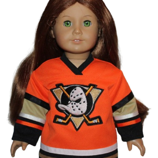 Show off your doll’s team spirit with this playful Anaheim Ducks inspired jersey! Featuring vibrant embroidery and cozy long sleeves, it fully opens in the back for easy dressing and undressing. Perfect for little fans who love to score style points in every game!