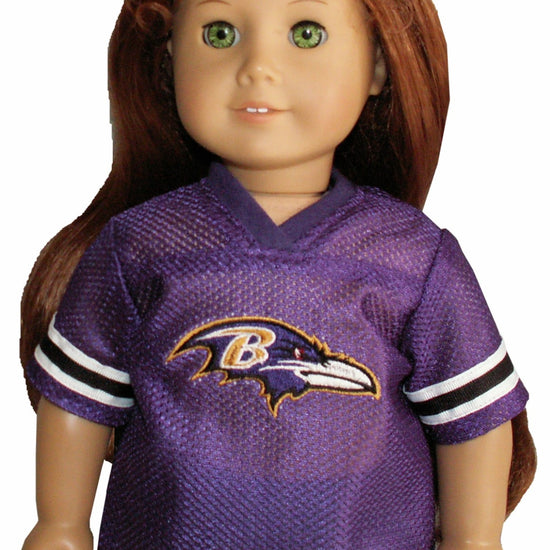 Show off your doll’s team spirit with this playful Baltimore Ravens-inspired jersey! Featuring the iconic logo beautifully embroidered on the front, it’s perfect for game day fun or everyday adventures. Let your doll join the fandom in style and cheer on the Ravens with every move!