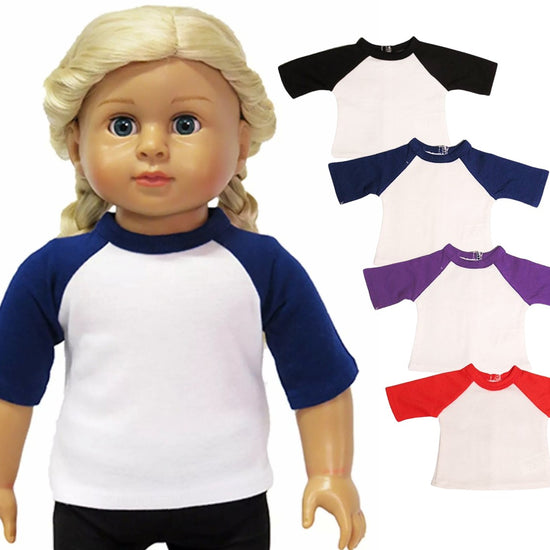 Swing into style with this charming baseball tee! Featuring a crisp white knit body paired with vibrant assorted-color sleeves and collar, this tee brings fun flair to any doll wardrobe. The convenient back Velcro closure makes dressing your American Girl doll quick and easy. Perfect for casual play or creating sporty-chic looks!