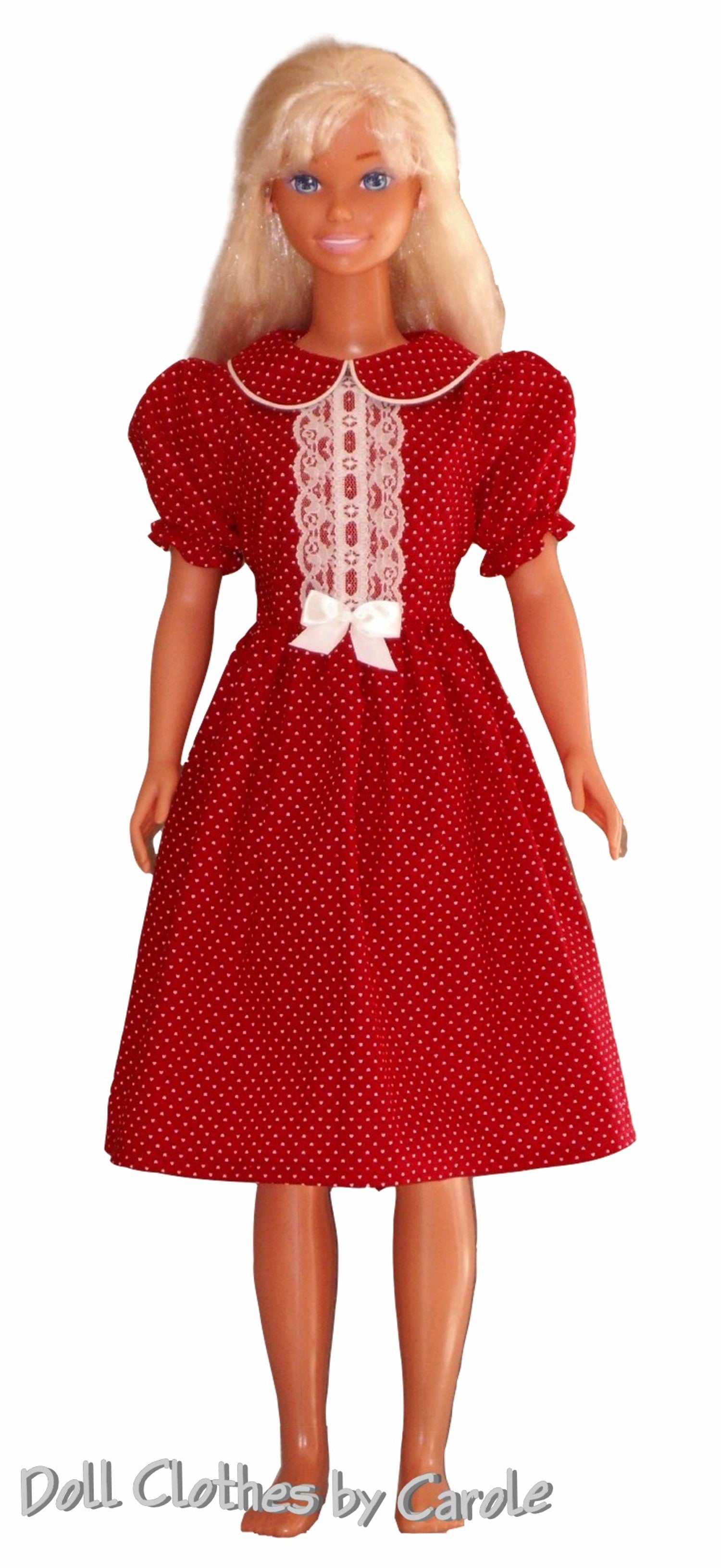This charming Basic Dress fits 36" My Size Barbie dolls perfectly! Featuring a sweet peter pan collar and decorative trim at the front bodice, it's a timeless style that's easy to dress and undress. Choose between short or long sleeves to match your doll's mood, and the convenient back Velcro closure makes outfit changes quick and simple. A wardrobe essential for any My Size Barbie collector!