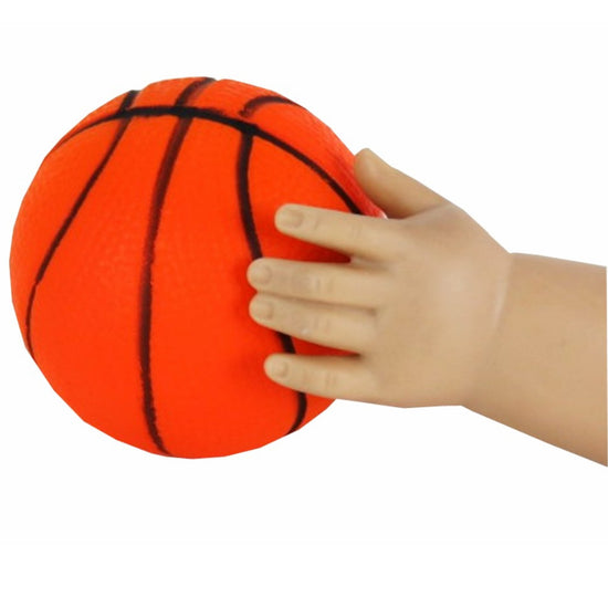Ball measures about 2 1/2 inches across and feels like a "Nerf" type ball.