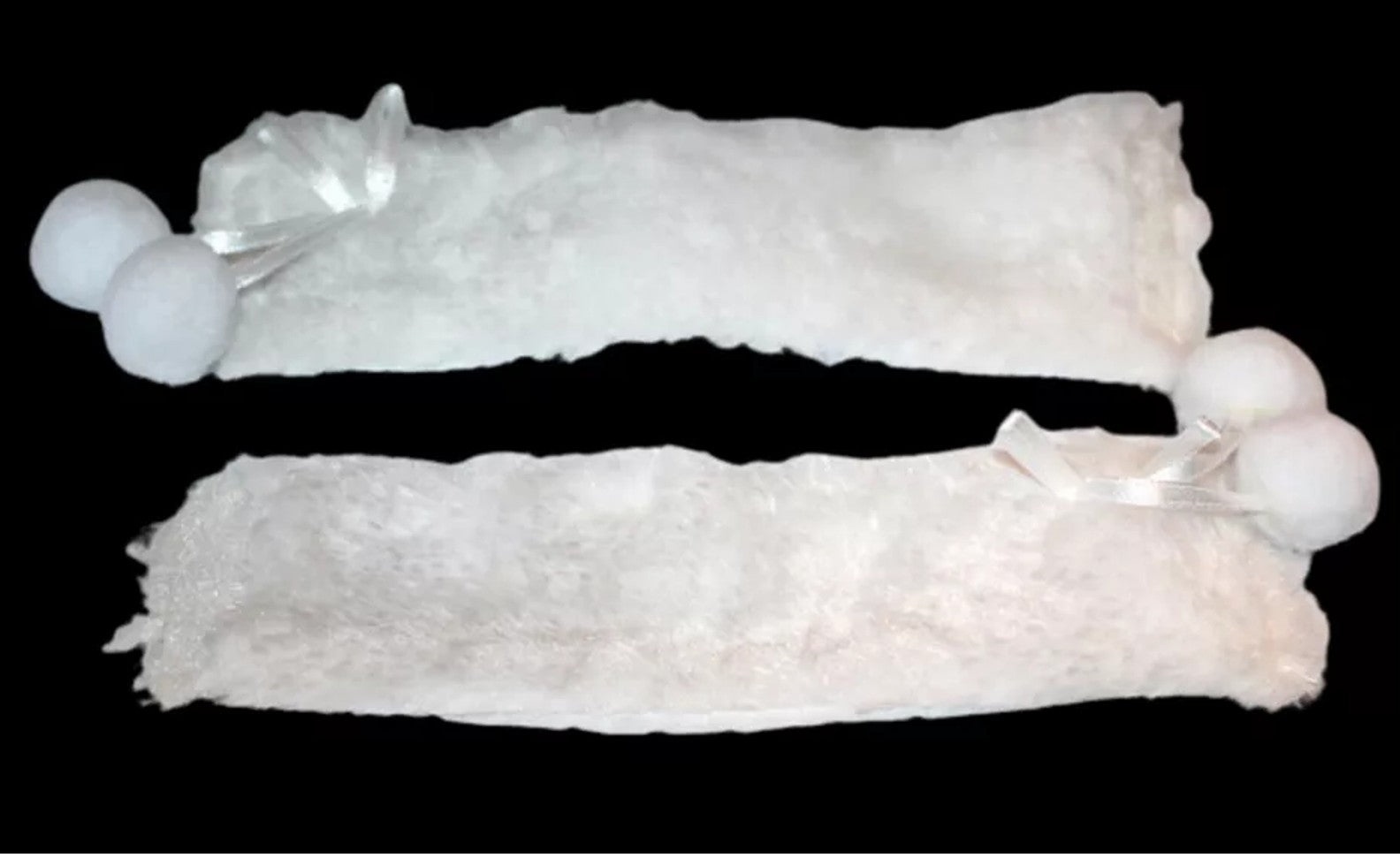 Black Boots with fur trim and pom poms.