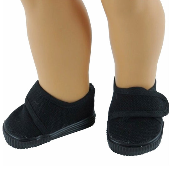 These sleek black canvas loafers are the perfect footwear upgrade for your 18" American Girl boy doll! Crafted from durable canvas with a classic loafer silhouette, they slip on effortlessly thanks to convenient Velcro closures—no fussy laces needed. Whether your doll is heading to a casual hangout or dressed up for a special occasion, these versatile shoes complete any outfit with style and comfort. A must-have addition to any doll's wardrobe!