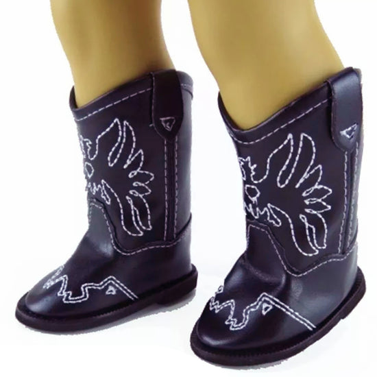 Black doll cowboy boots feature an embroidered American Eagle on the front, adding a classic touch to your doll’s outfit. Designed for a comfortable fit, they bring a Western style perfect for imaginative play.