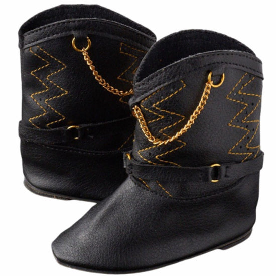 These black cowboy boots with cool chain details are the perfect stylish kick for your My Twinn dolls. They add a touch of western flair and a bit of edgy charm, making your dolls ready for any adventure. Easy to slip on, these boots bring fun and attitude to playtime.