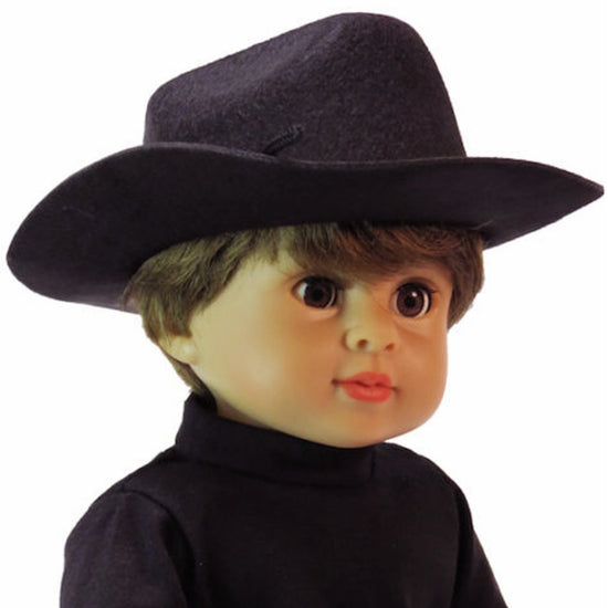 Transform your 18" American Girl doll into a rootin' tootin' cowpoke with this classic black cowboy hat! Sized for a 12" head circumference, it's ready for wild west escapades and frontier fashion. Perfect for creating unforgettable doll adventures with authentic western flair!