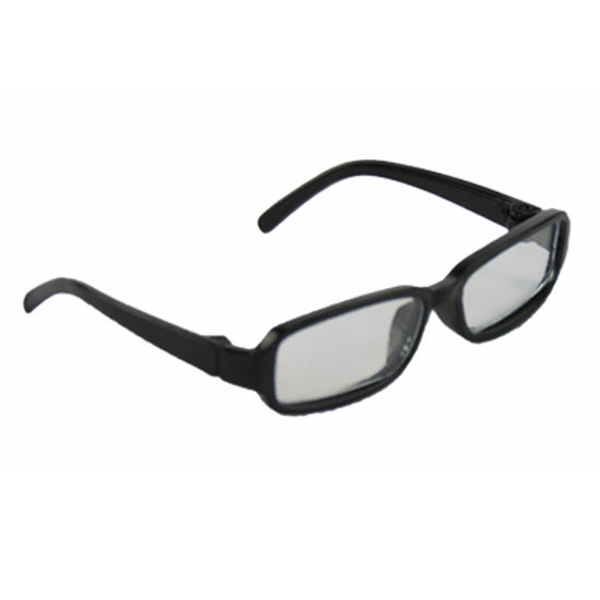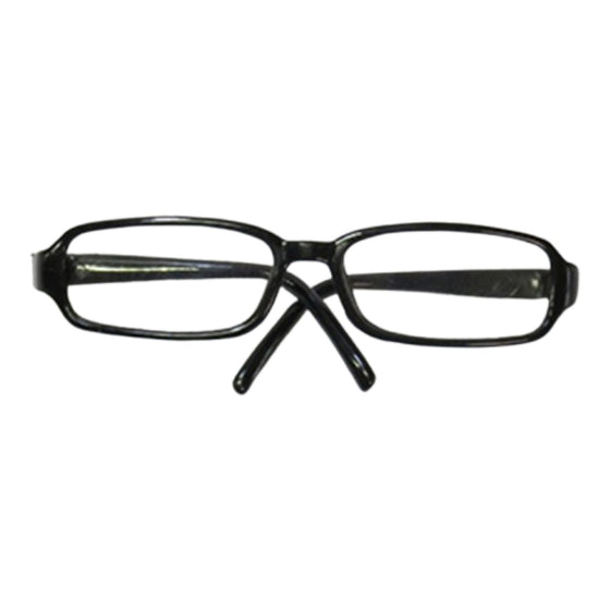 Black fashion glasses feature a lightweight plastic frame designed for dolls. They add a stylish and playful accessory to complete any doll's outfit, making playtime more fun and imaginative.