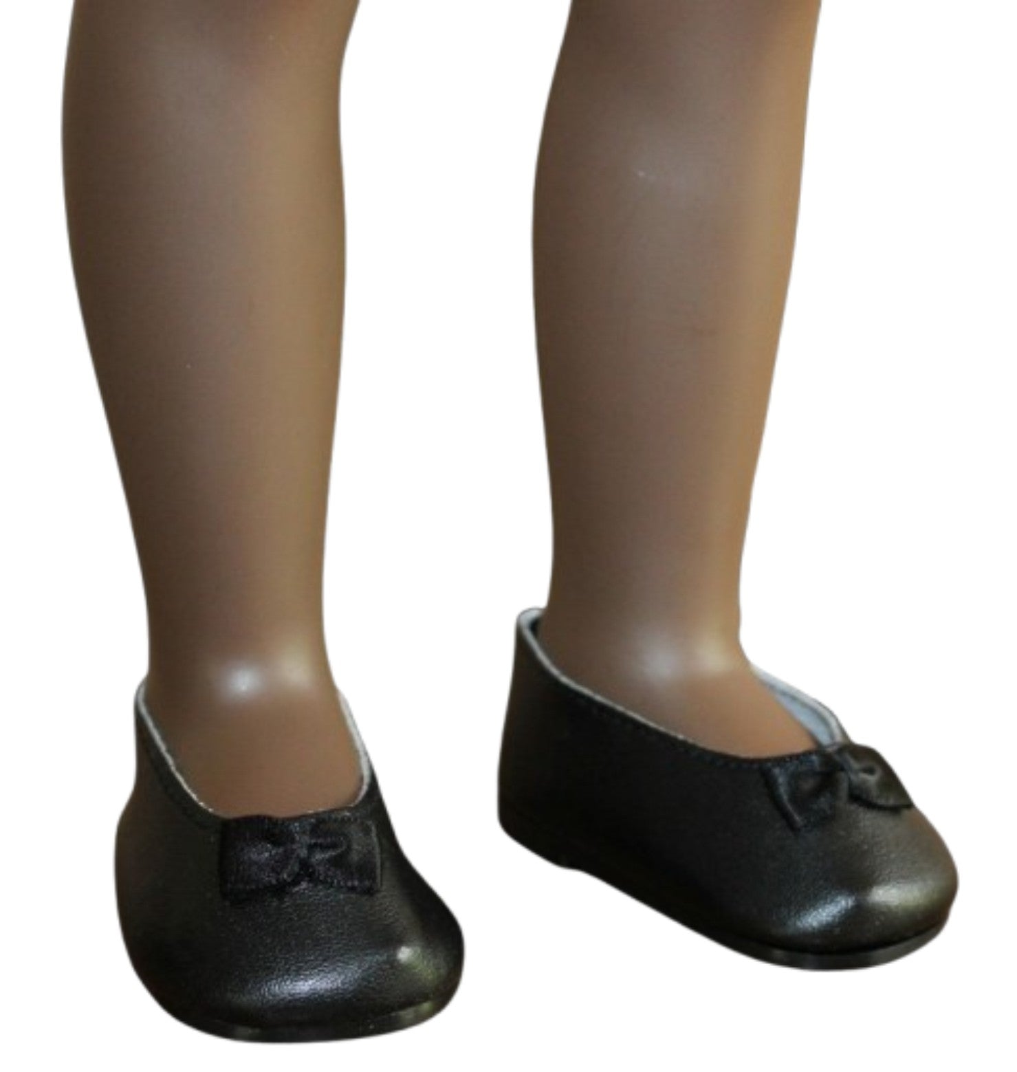 Slip-on black flats designed to fit 21" Karito Kids dolls with charming bow details. These classic shoes complement any doll outfit and are easy to put on and take off. Perfect for completing your doll's everyday look or pairing with special occasion ensembles. Handcrafted with attention to detail to match the quality of your doll collection.