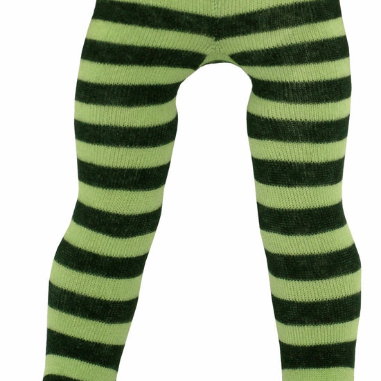 Green and black stripe knit tights made to fit the 18" American Girl size doll.