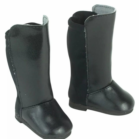 Saddle up in style with these sleek black knee-high equestrian boots! Crafted from faux leather with convenient side zippers, they slip on effortlessly and pair beautifully with skinny jeans or leggings for 18" dolls. Whether your doll is heading to the stables or the city, these versatile riding boots deliver polished, ready-for-anything charm.