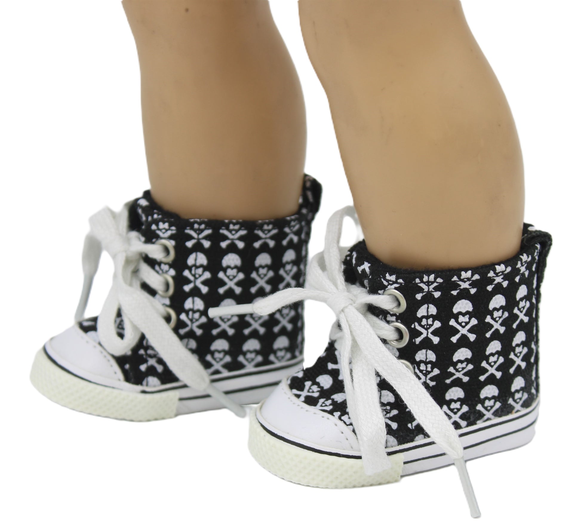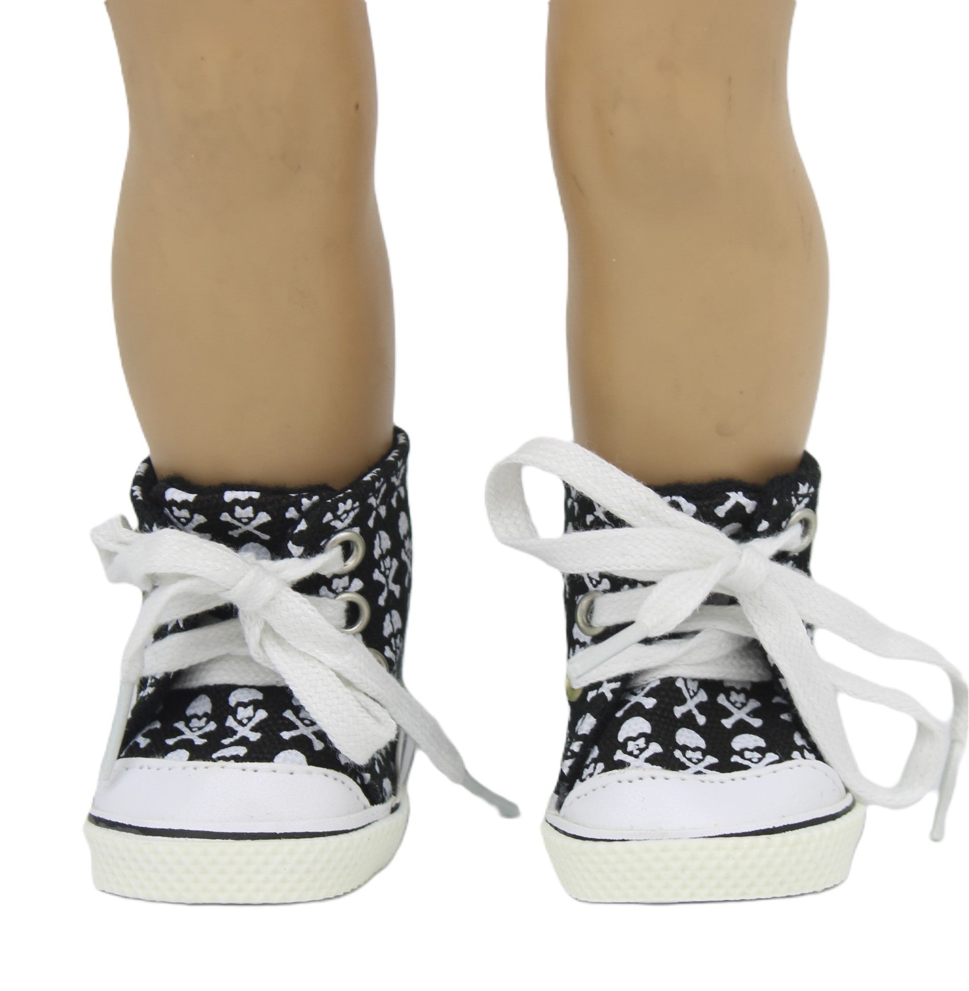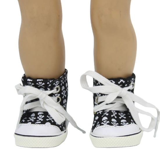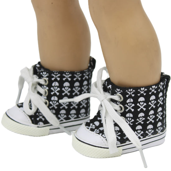 Black skull & crossbones canvas mid-high top sneakers with laces.