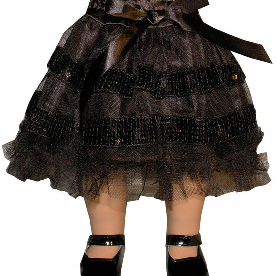 This Black Tiered TuTu Skirt brings sparkling fun to your doll’s wardrobe! With its easy elastic waist and dazzling sequin accents, it’s perfect for stealing the spotlight. Let your doll shine in style and comfort!