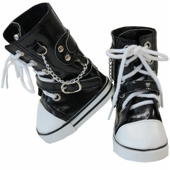 Add a bold edge to your American Girl doll’s look with these black vinyl high-top sneakers. Accented with cool chains, they bring a playful punk style that’s perfect for making a statement during every doll adventure. Step out in style and let your doll rock her unique vibe!