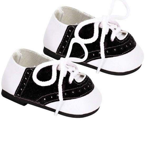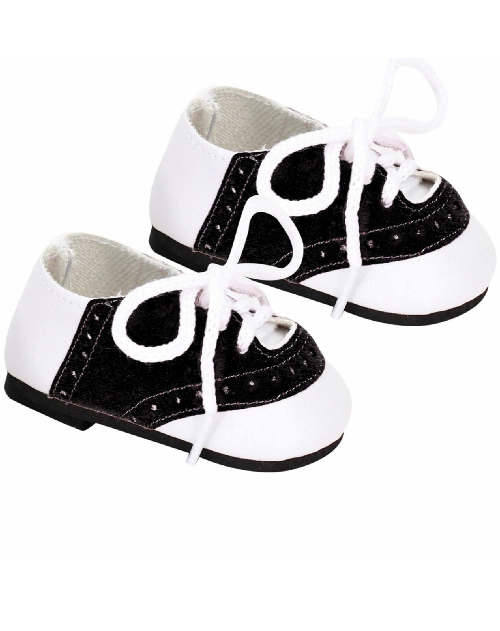 Black and white saddle shoes are designed perfectly for 18" dolls, complementing your doll's poodle skirt outfit.