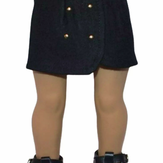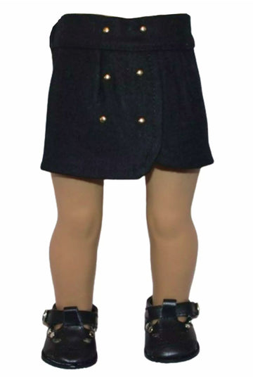Black wrap style skirt with gold button accents has elastic in back.