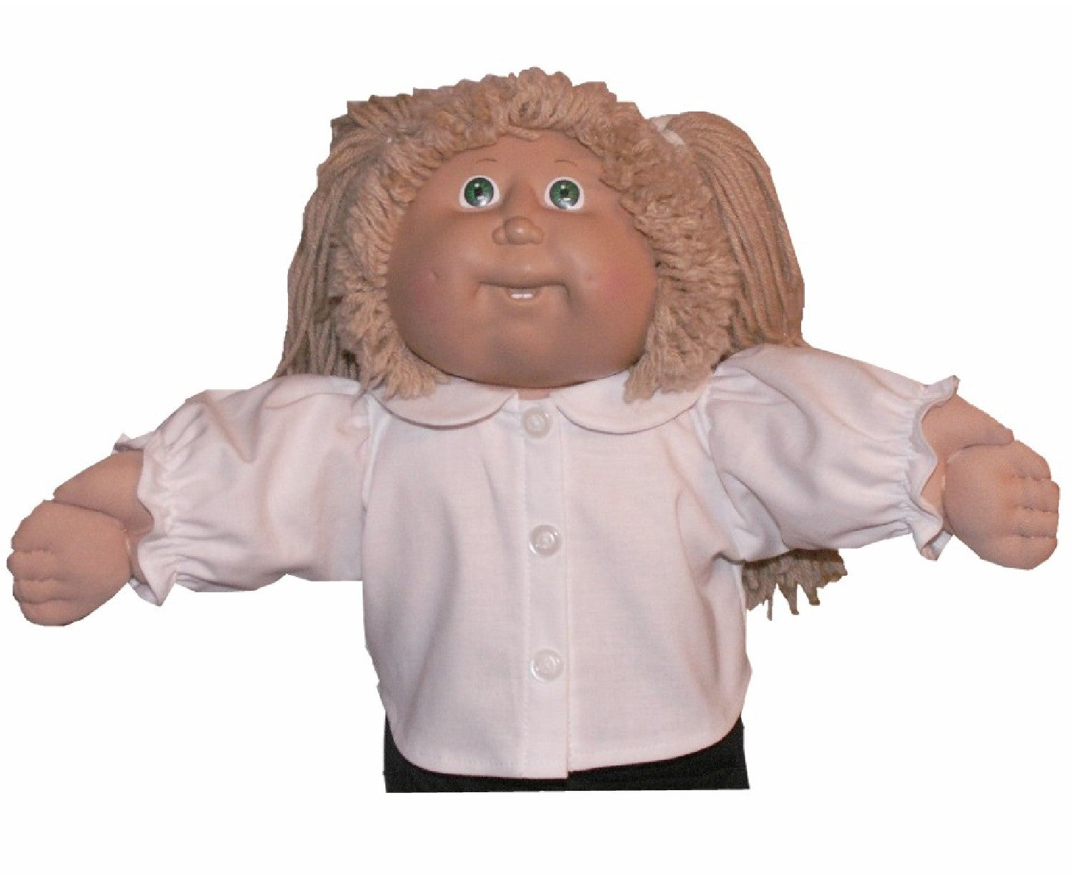Dress your 16" CPK doll in charm with this playful blouse featuring a sweet Peter Pan collar and your choice of short or long gathered sleeves. Decorative buttons add a cute touch, while a Velcro closure makes changing outfits easy and fun.