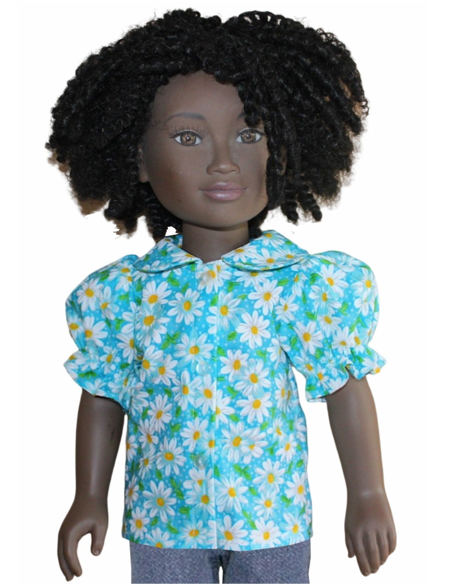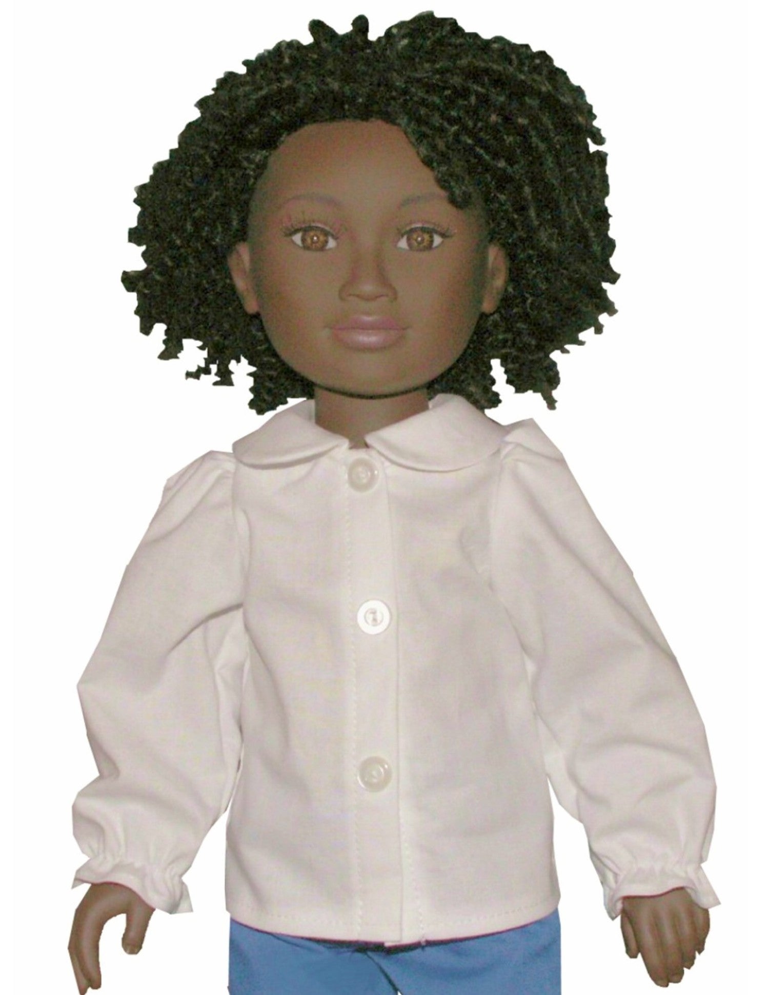 Dress up your 21" Karito Kids doll in this charming blouse featuring a sweet peter pan collar and your choice of short or long gathered sleeves. Decorative buttons add vintage flair, while a hidden Velcro closure makes dressing your doll quick and easy. Perfect for creating classic, timeless looks that celebrate doll fashion at its finest!
