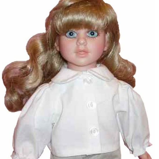 This playful blouse for your My Twinn Cuddly Doll features a charming Peter Pan collar and cute gathered sleeves available in short or long styles. Decorative buttons add a sweet touch, while the convenient Velcro closure makes dressing up your doll a breeze.