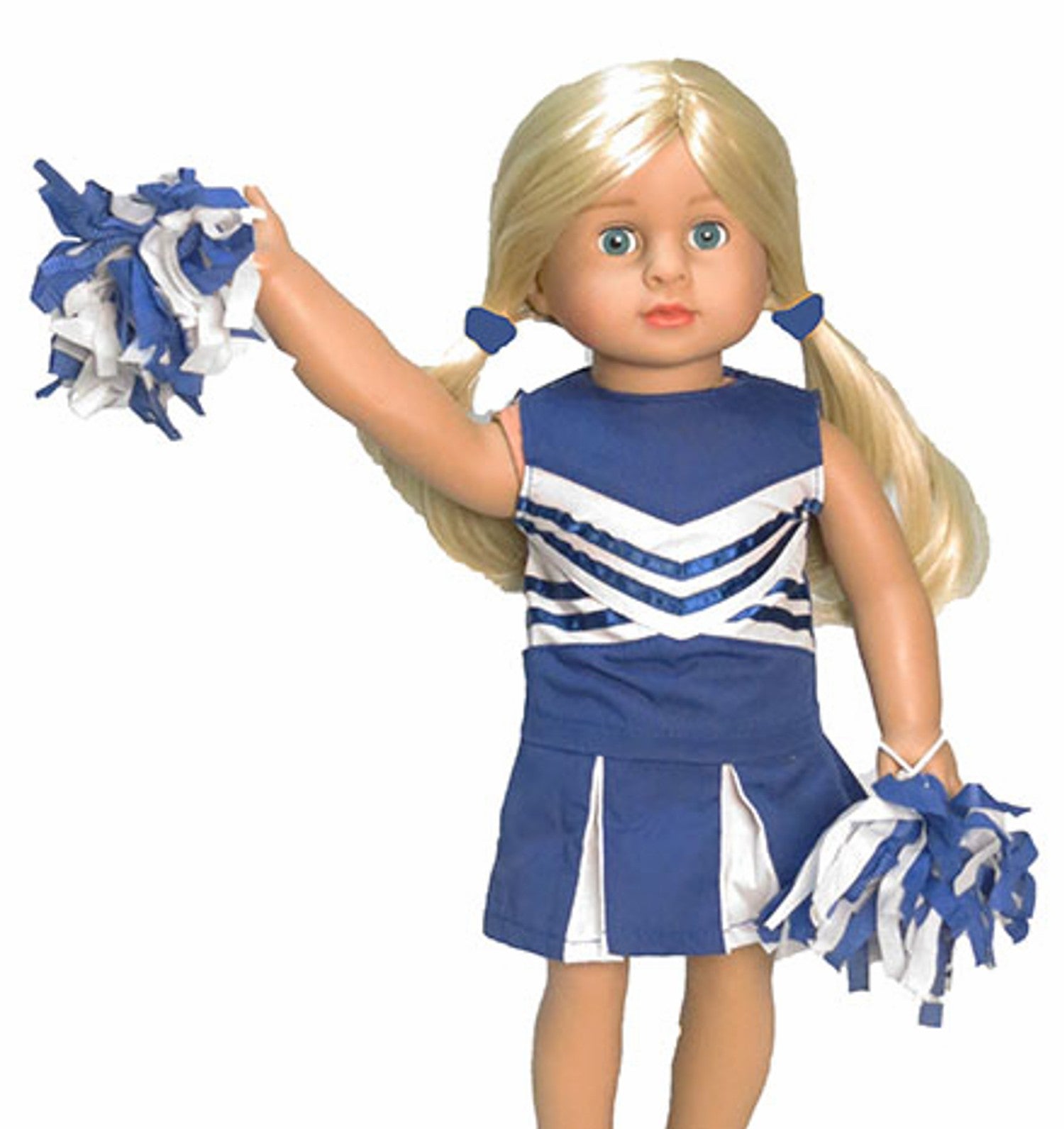 Cheer on the fun with the Blue Cheerleader Outfit! Featuring a bright blue and white top, a matching skirt, and lively pom poms, this set adds energy and excitement to your doll’s playtime. Perfect for spirited performances and imaginative adventures.