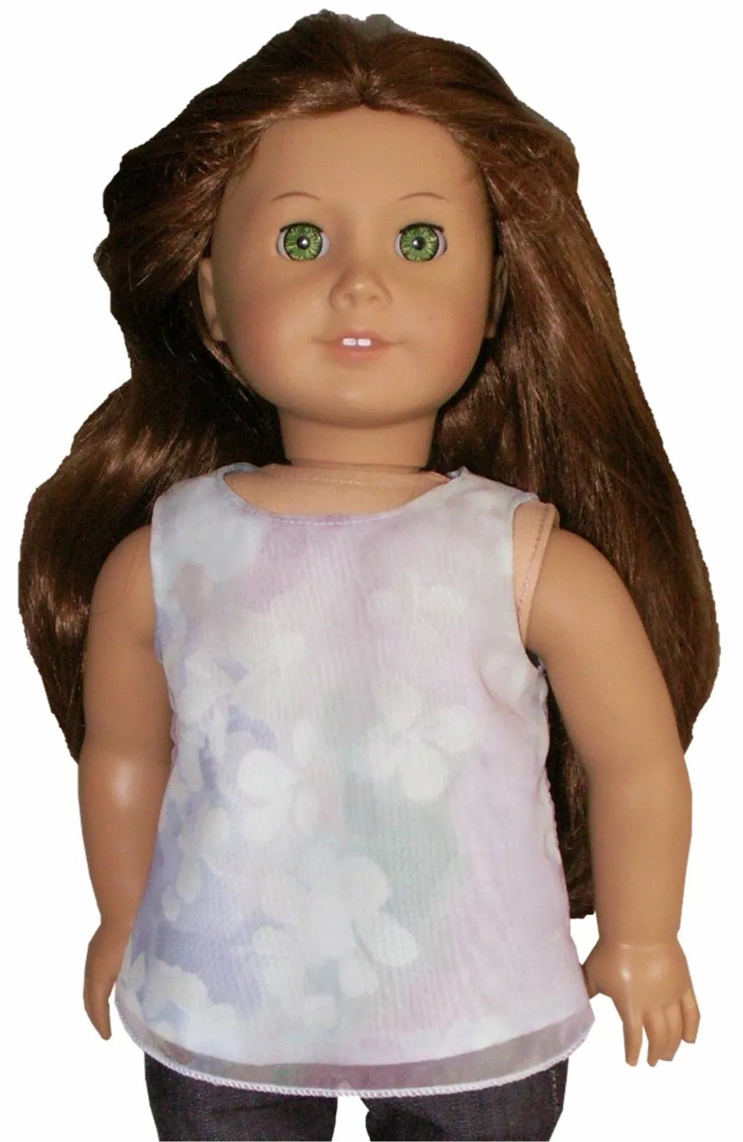 Top is tunic length, perfect under cropped jackets or over your doll's favorite pair of jeans. Closes in back with Velcro.