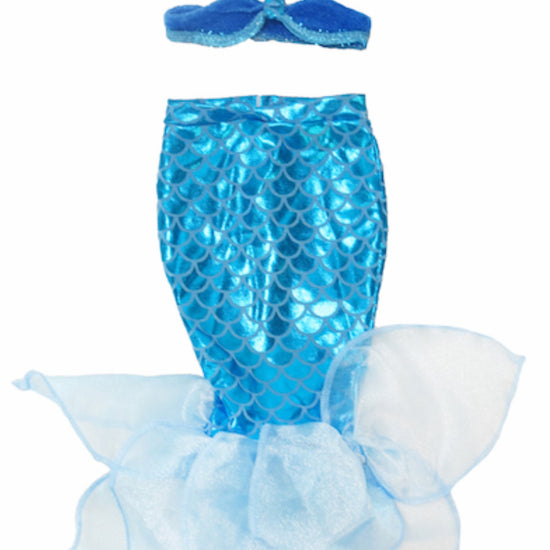 Let your doll make a splash in this adorable blue mermaid costume! This two-piece set pairs a vibrant top with stretchy bottoms for comfortable, easy movement during imaginative play. The soft velcro closure makes dressing quick and hassle-free. Crafted to fit 18-inch American Girl dolls, it's the ideal outfit for underwater escapades and mermaid adventures.