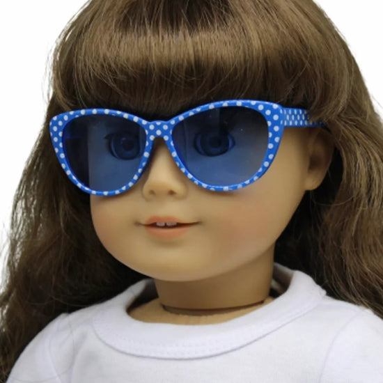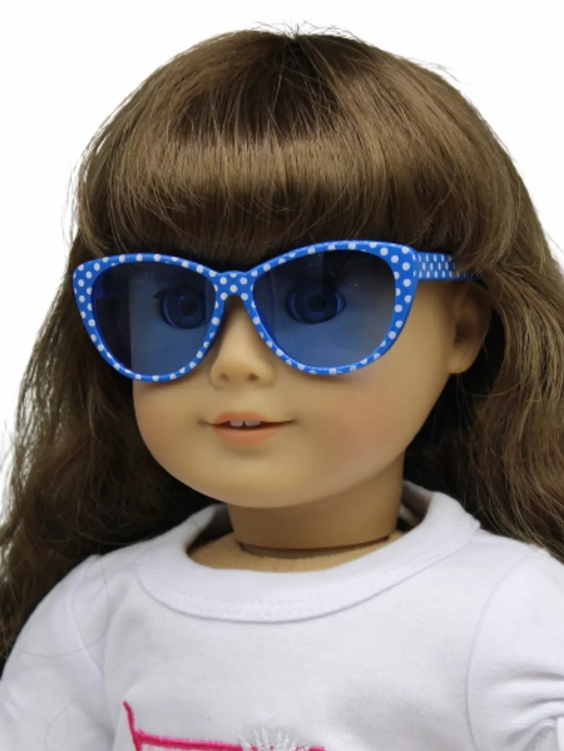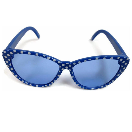 Blue polka dot style plastic frame sunglasses with blue lenses.