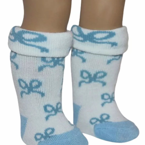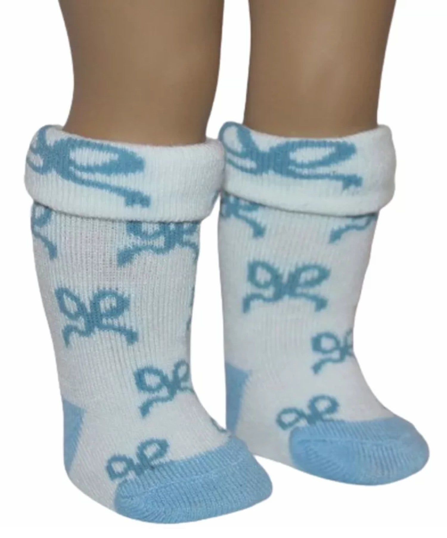 Blue ribbon knee high socks fit most dolls 15-21" with average size feet.