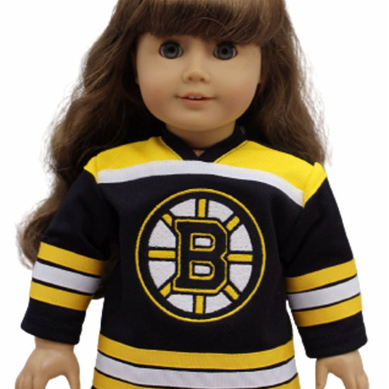 Get your doll ready for game day with this playful Boston Bruins inspired jersey! It features detailed embroidery, long sleeves, and a full back opening for quick and easy dressing. Perfect for little fans eager to cheer on their favorite team in style!