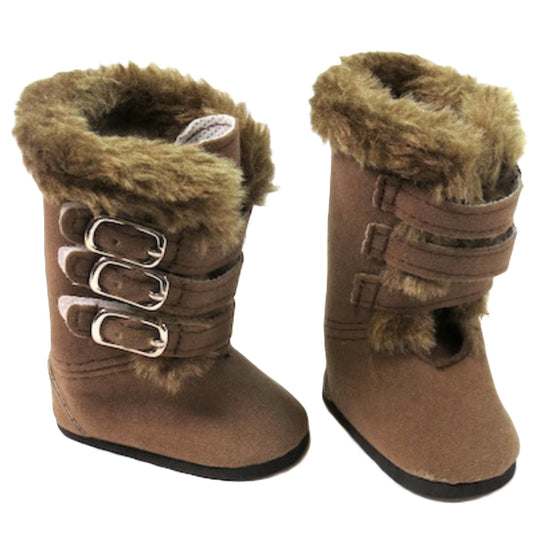 These adorable brown faux leather boots are the perfect finishing touch for your 18-inch doll's wardrobe. Featuring cozy faux fur trim, decorative buckle details, and a rich brown finish, they're designed to fit American Girl dolls and similar-sized companions. Whether your doll is heading on an adventure or getting dressed up for a special occasion, these boots add instant charm and style to any outfit.