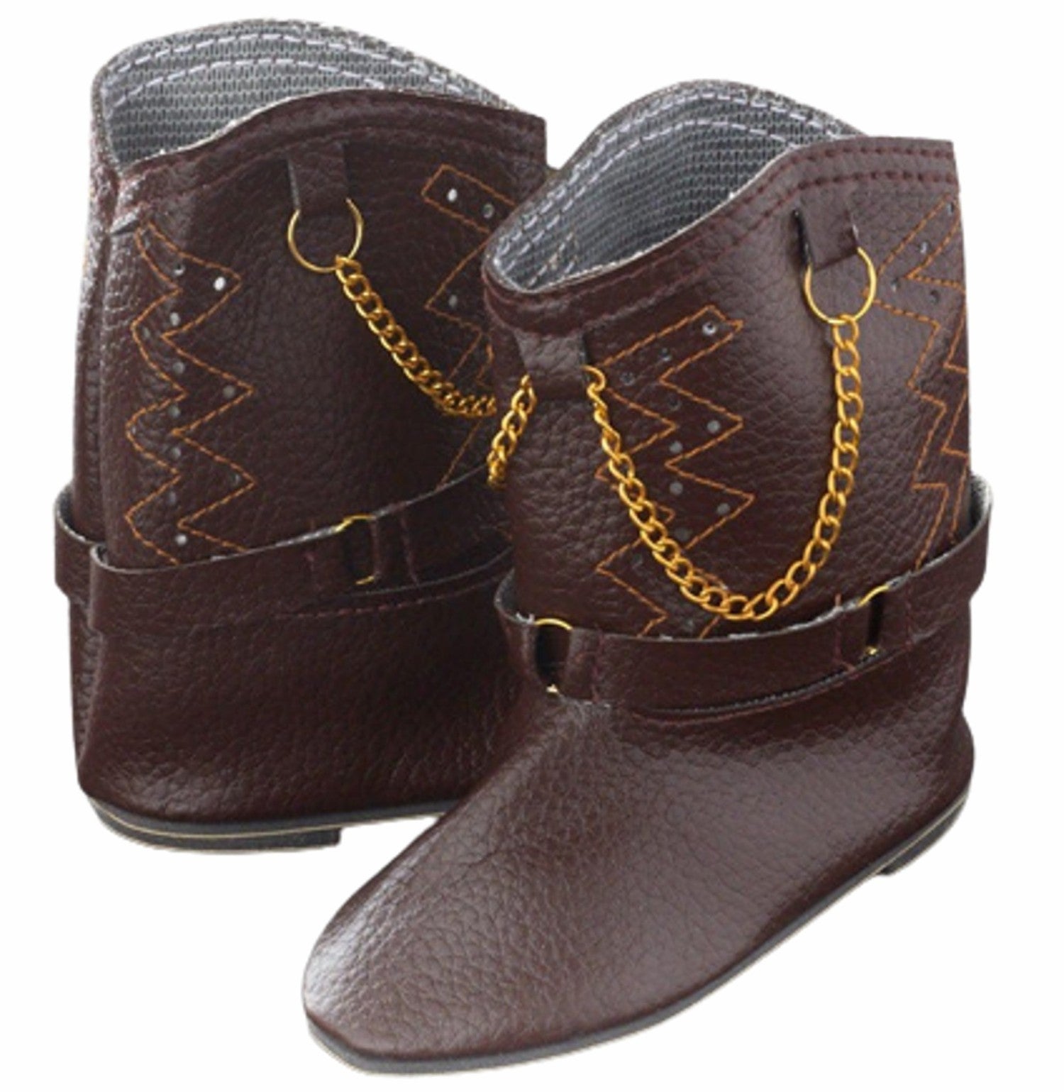 These brown cowboy boots with cool chain details are the perfect stylish kick for your My Twinn dolls. They add a touch of western flair and a bit of edgy charm, making your dolls ready for any adventure. Easy to slip on, these boots bring fun and attitude to playtime.