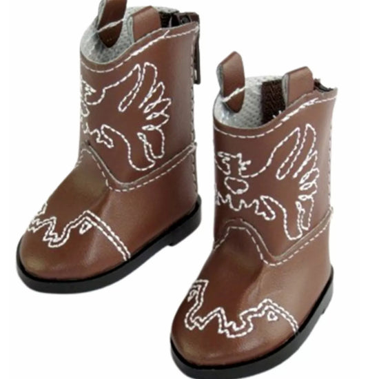 These brown cowboy boots are designed for WellieWishers dolls, featuring distinctive eagle stitching for a bold, western look. They add a unique touch to your doll’s outfit while fitting comfortably for stylish play.
