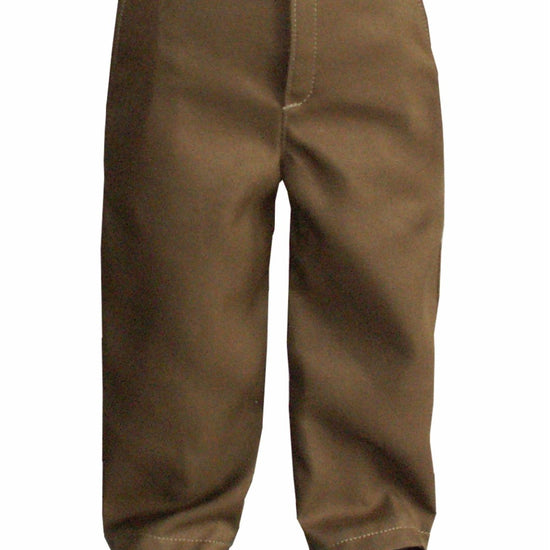 Get your My Twinn boy doll ready for adventure with these playful brown olive twill slacks! Featuring a flat front and closing securely with Velcro and a snap, they offer a comfy fit and easy dressing for endless fun.