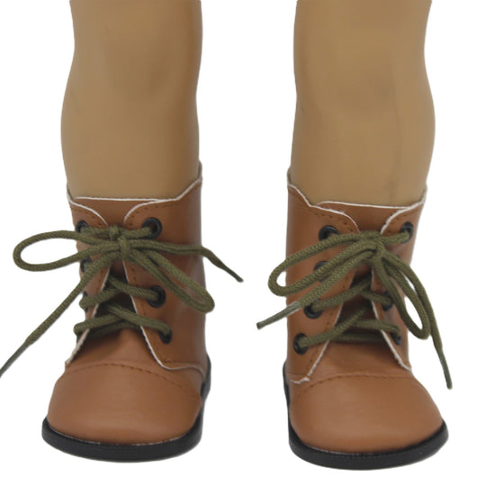 Step into style with these charming brown faux leather boots featuring a delicate scalloped edge. Perfect for 18" dolls, they're the ideal companion for pioneer adventures, colonial escapades, and so much more. Whether dressing up boy dolls or completing a historical ensemble, these boots add a whimsical touch that brings any doll outfit to life.