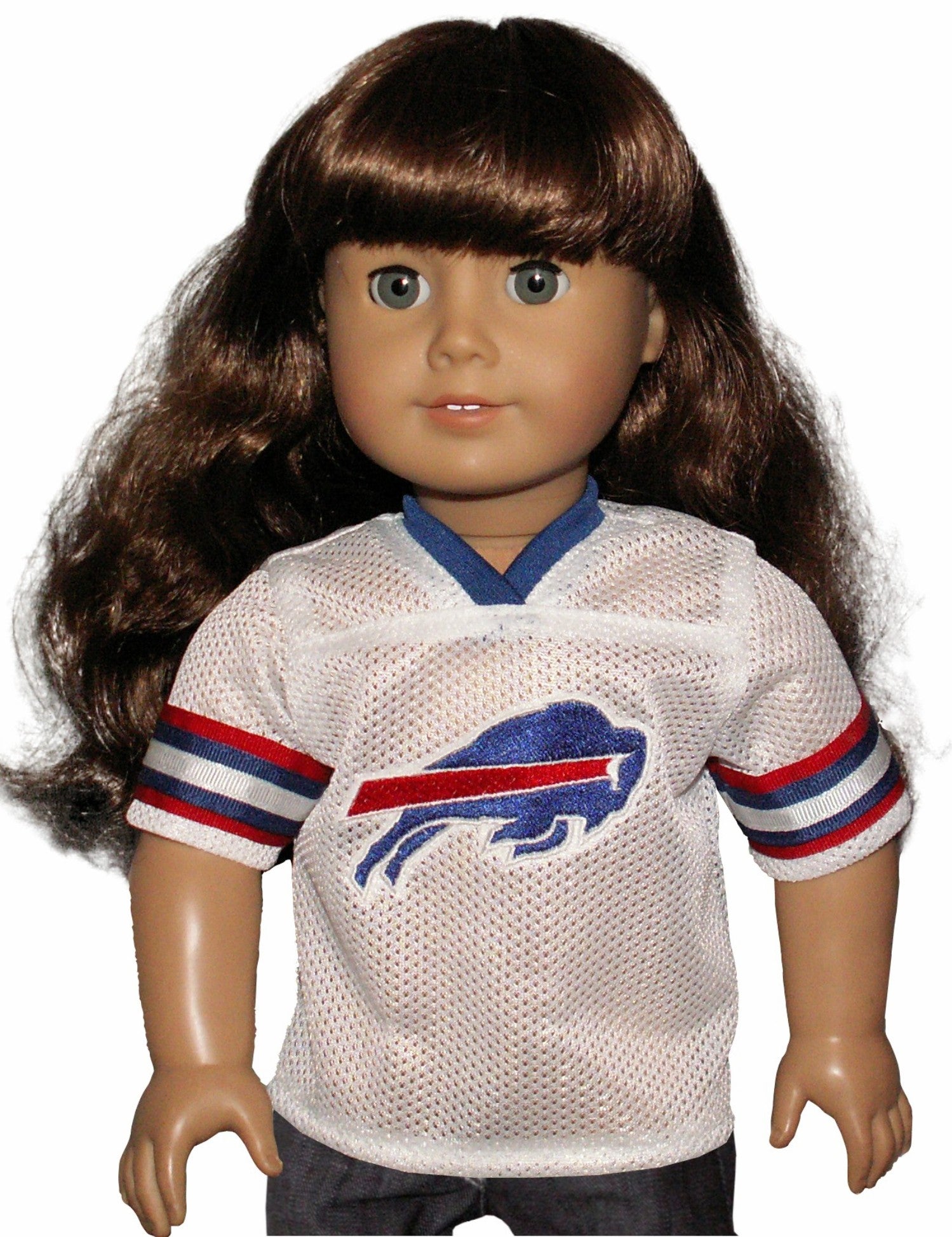 Get your doll game-day ready with this Buffalo Bills-inspired jersey! Featuring a vibrant embroidered logo on the front, it adds a sporty touch perfect for cheering on your favorite team. Soft, comfy, and made to fit American Girl dolls, this jersey brings fun and team spirit right into playtime. Whether on the sidelines or in the stands, your doll will score big in style!