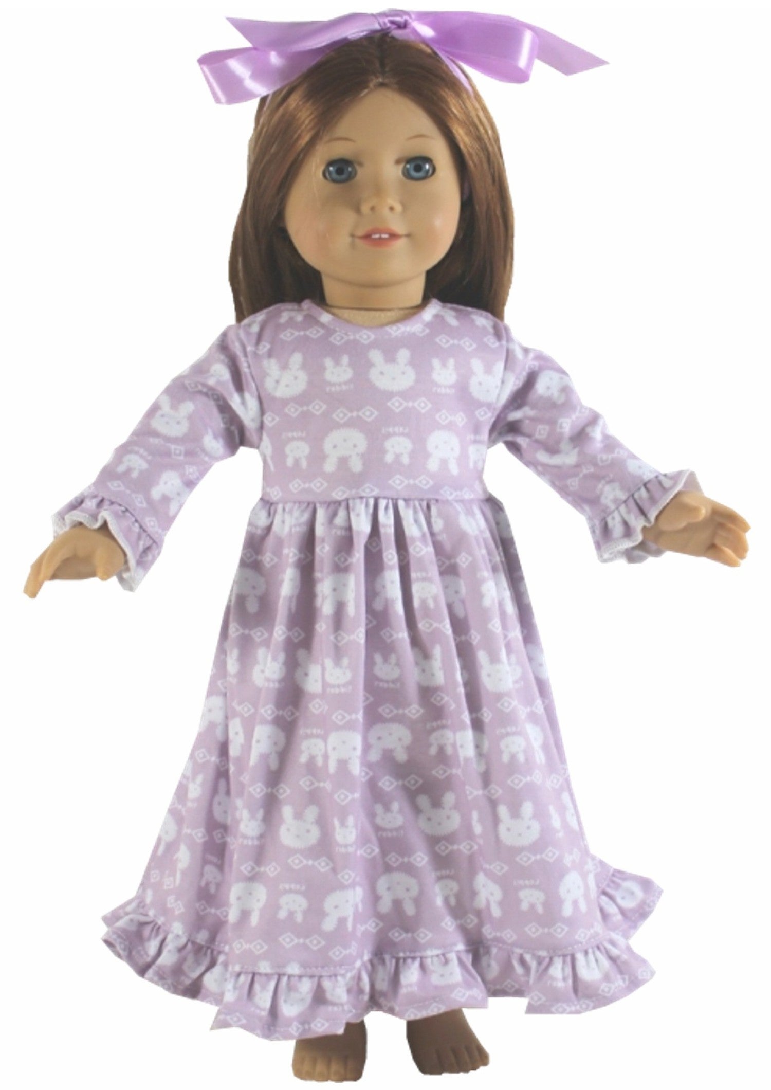 This light purple nightgown features a charming bunny print and comes with a matching hair ribbon, perfect for your American Girl doll’s bedtime adventures. Soft and cute, it’s designed to keep your doll cozy and stylish through every dream-filled night.
