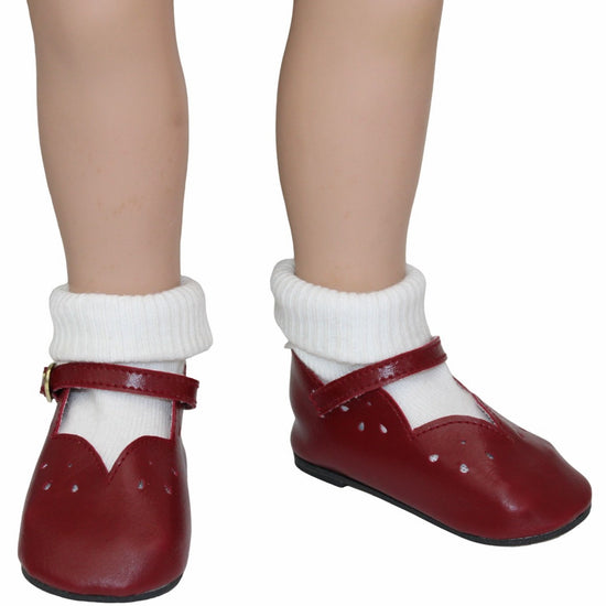 Add a pop of color to your My Twinn doll’s wardrobe with these burgundy red Mary Jane ankle strap shoes. They bring a playful and classic charm to every outfit. Dress up your doll and let her step out in style!