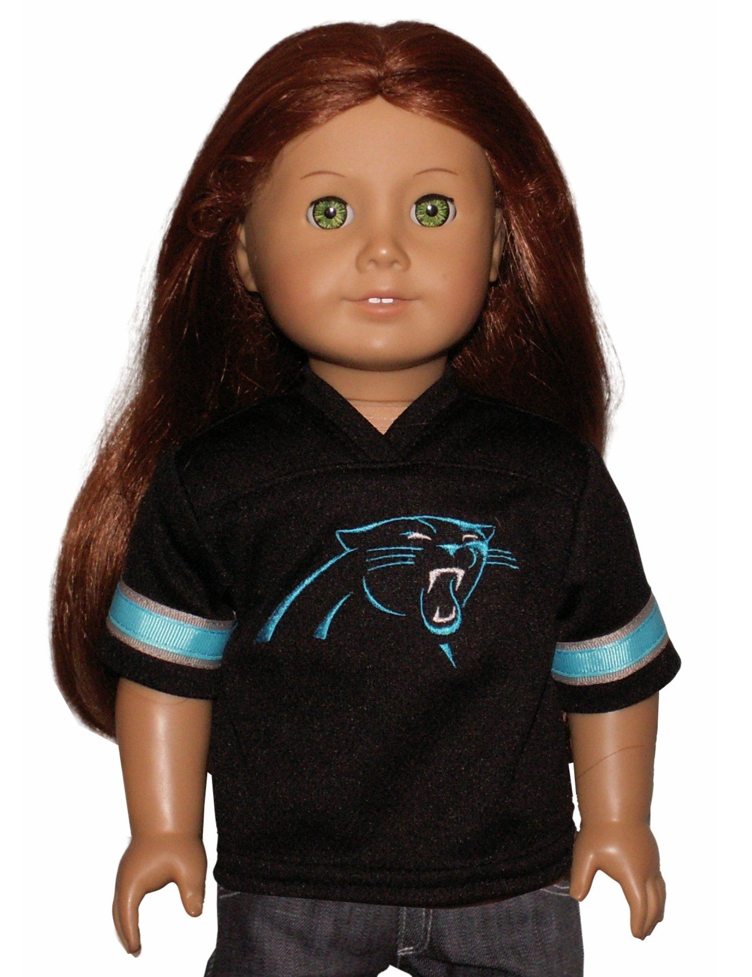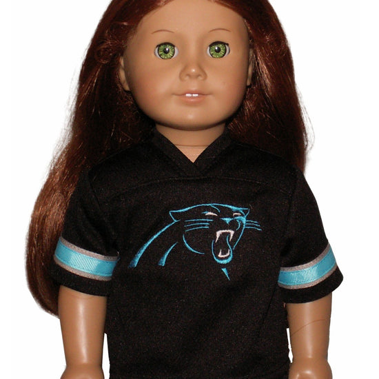 Show your doll’s team spirit with this playful Carolina Panthers-inspired jersey! Featuring a beautifully embroidered logo on the front, it’s the perfect outfit for game day fun and cheering on the Panthers in style. Designed to fit American Girl dolls, this jersey adds a sporty touch to your doll’s wardrobe and keeps the excitement of football alive during playtime.