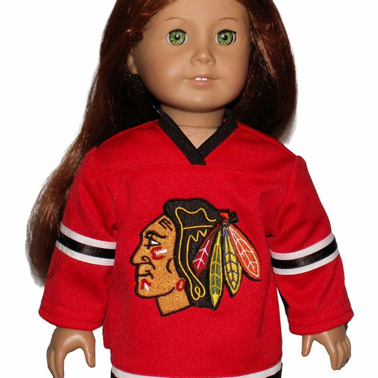 Show off your doll’s team spirit with this Chicago Blackhawks-inspired jersey! Featuring detailed embroidery and long sleeves, it fully opens in the back for quick and easy dressing. Perfect for playtime or game day, your doll will be ready to cheer on the Blackhawks in style.