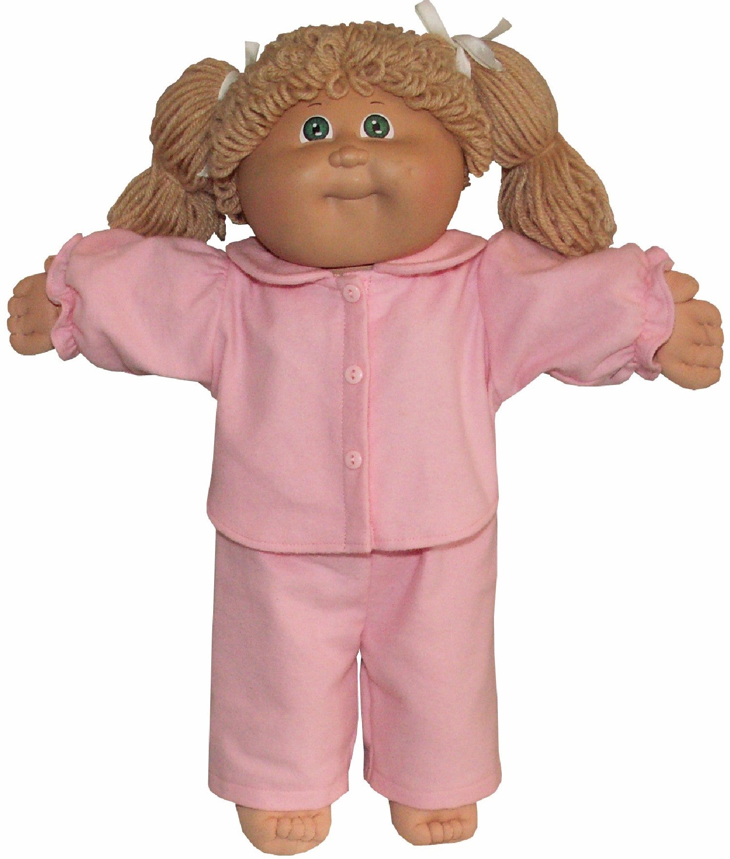 Cozy pajamas perfect for tucking your 16" CPK into bed! These classic PJs feature a collared top with long sleeves and matching elastic-waist pants. Choose between a sweet rounded collar (girls' style with fuller sleeves) or a squared collar (boys' style). Give your little one's doll the gift of comfortable, stylish sleepwear.