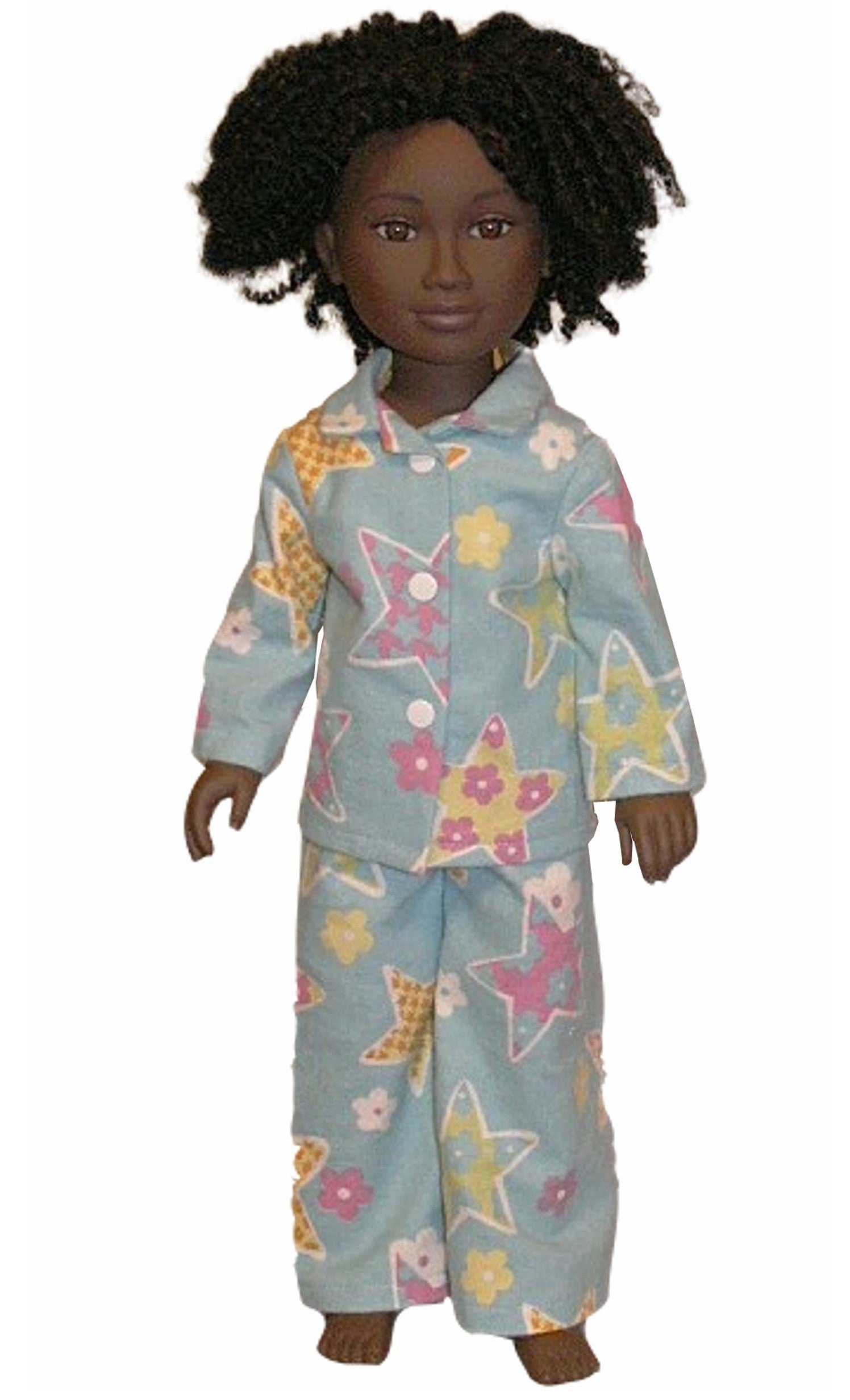 Cozy pajamas designed for 21" Karito Kids dolls feature a classic collar, long sleeves, and matching pants with an elastic waist for easy dressing. Perfect for bedtime routines and sleepover adventures. Handcrafted to fit your doll comfortably and withstand playtime wear.