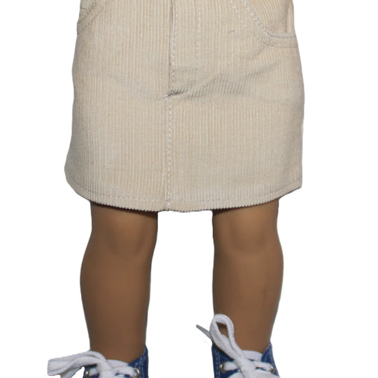 This adorable corduroy skirt for your American Girl doll closes easily in front with a snap and Velcro, making outfit changes quick and fun. Its soft fabric and vibrant design bring a playful touch to your doll’s wardrobe, perfect for imaginative play!