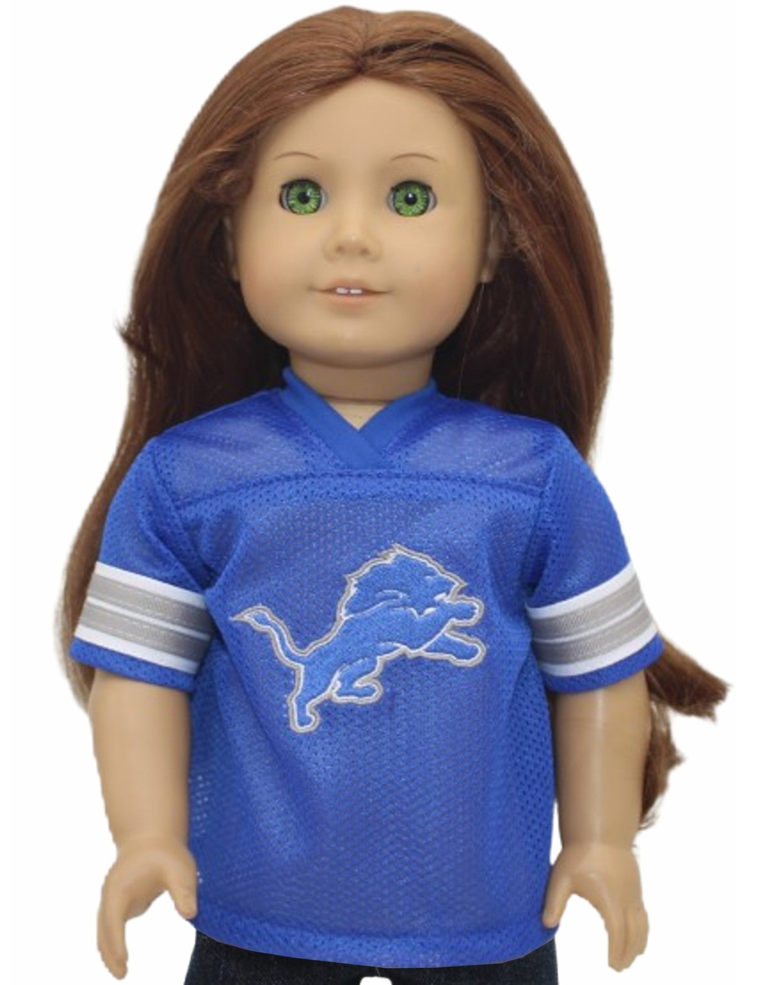 Let your doll roar with team pride in this Detroit Lions-inspired jersey, featuring a vibrant embroidered logo on the front. It's the perfect playful addition for game day or everyday adventures, adding a sporty touch and bold color to your doll’s collection. Celebrate the Lions spirit in style!