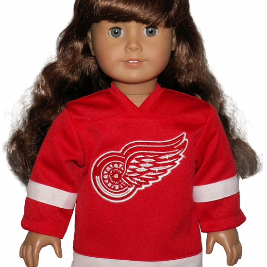 Dress your doll in team spirit with this Detroit Red Wings inspired jersey! Featuring detailed embroidery and long sleeves, it fully opens in the back to make dressing your doll a breeze. Perfect for playtime or showing off your love for the Red Wings in style!