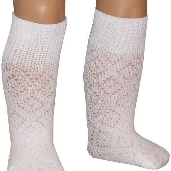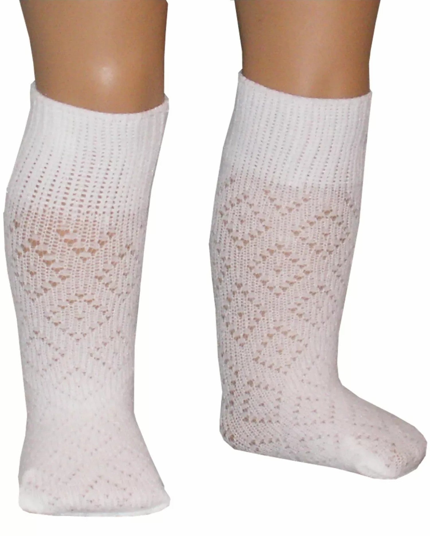 White diamond pattern knee high socks fit most dolls 15-20" with average size feet.
