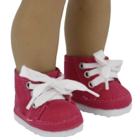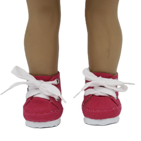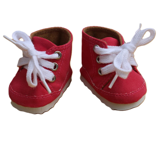 Step up your doll’s style with these dusty red faux suede mid-high sneaker boots, perfectly sized for 18" American Girl dolls. Combining sporty vibes with a cozy look, these boots are ready for all your doll’s adventures with a splash of bold color and casual charm.