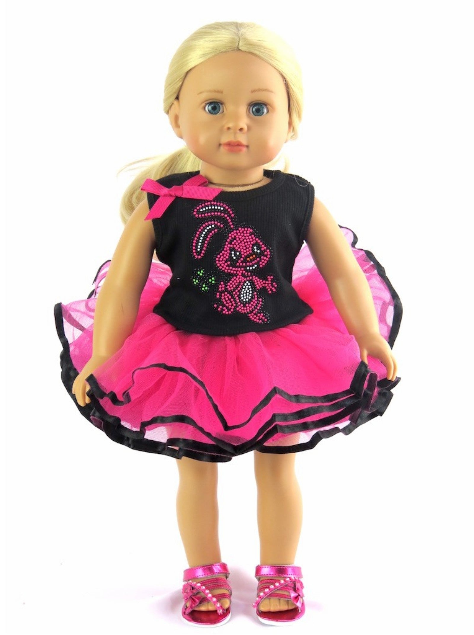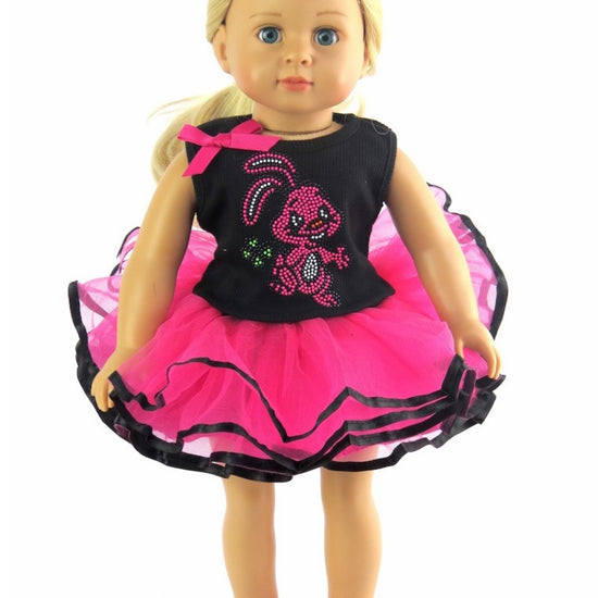 Hot pink Easter bunny tutu dress with black accents.