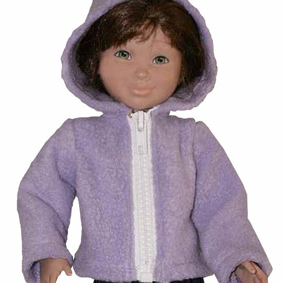 Cozy fleece hooded jacket designed for 16" Hopscotch Hill dolls. Features a spacious hood for extra warmth and a separating zipper for easy on-and-off dressing. Crafted with quality construction to match your doll's everyday adventures. Zipper color varies based on availability—black or white options used when exact matches aren't in stock.