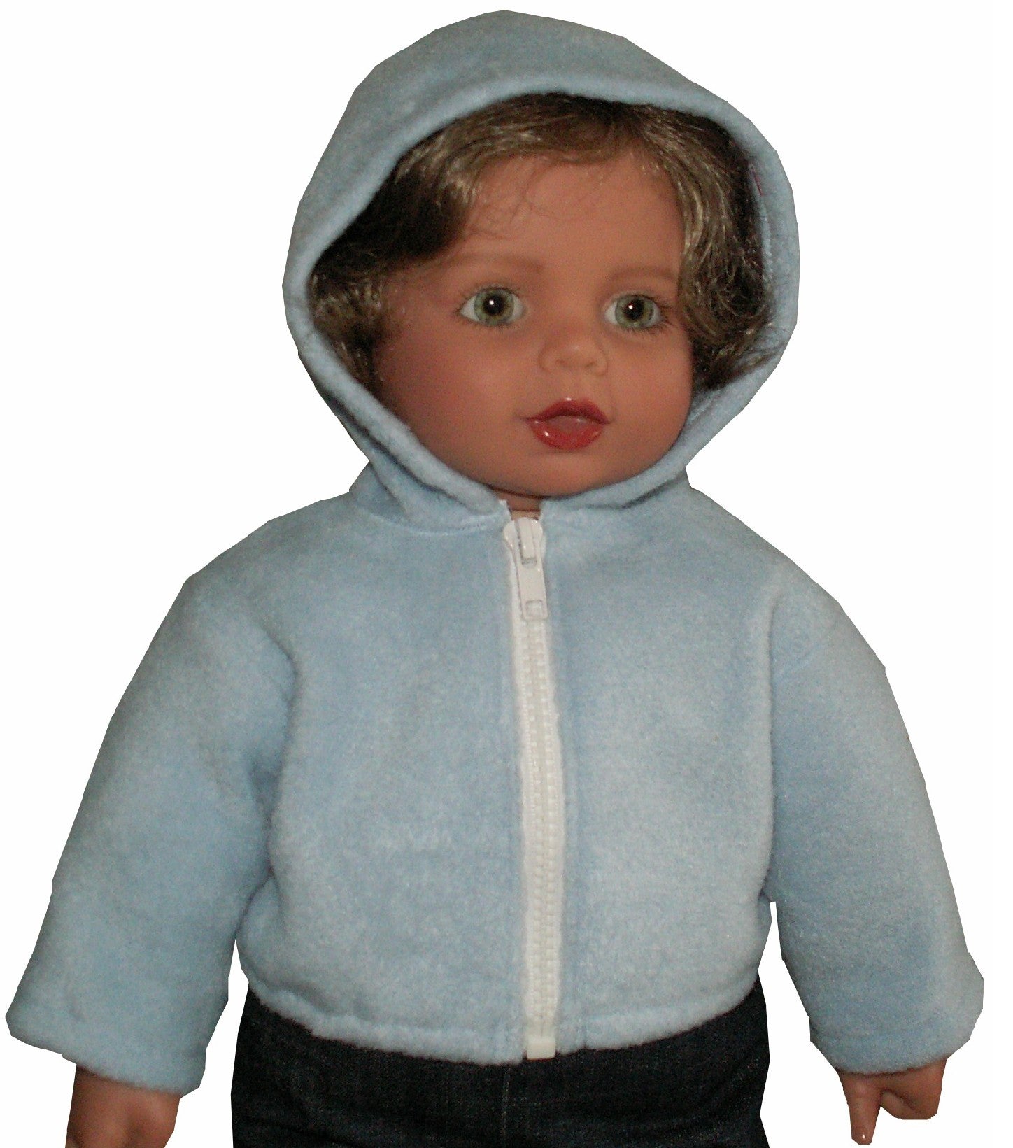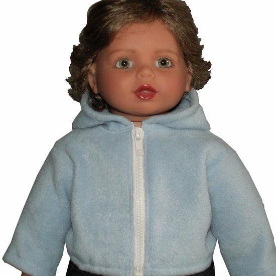 Wrap your 20" My Twinn Toddler doll in cozy comfort with this fleece hooded jacket! Featuring a soft, warm fleece fabric and a convenient front zipper, it's perfect for keeping your doll snug during playtime adventures. The attached hood adds extra charm and practicality. Zipper color varies based on availability—we use black or white when an exact match isn't on hand. A must-have layering piece for any doll wardrobe.